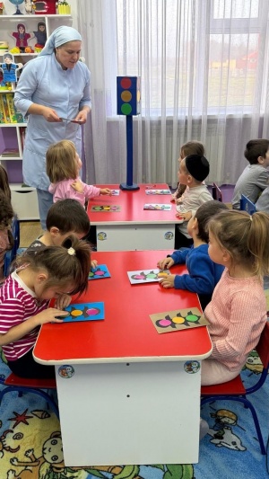 В ближайшем окружении: сельская администрация, почтовое отделение, частный садик, магазины. Проект здания адаптирован к местным климатическим и экологическим условиям. Здание и оборудование ДОУ отвечает требованиям техники безопасности, требованиям СанПиН.