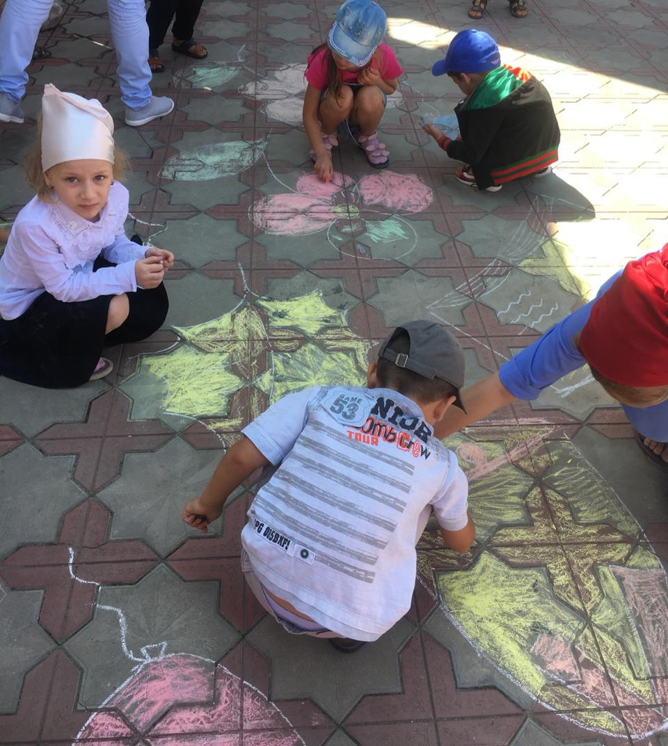 Воспитанники детского сада "Жайна" приняли участие в конкурсе рисунков на асфальте "Пусть всегда буду я"